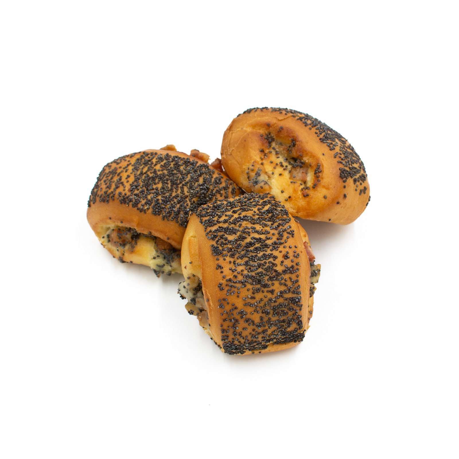 Mažos, iš rankų gimstančios bandelės, turinčios paprastumo ir namų šilumos. Kiekvienoje jų – sotesnis užkandžio pažadas. Viduje pasislėpęs lašinukų įdaras suteikia jaukumo ir stiprumo jausmą, tarsi iš senų kepimo tradicijų. Paviršių dengia aguonų sluoksnis, primenantis apie kruopštumą ir rankų darbą. Kiekvienas kąsnis – lyg trumpas sustojimas tarp darbų, kai norisi paprasto, tikro maisto.